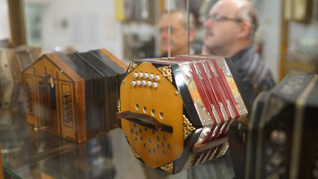 Eindrucksvolle Sammlung von über 1000 Zungeninstrumenten – von Mundharmonikas, diatonischen Handharmonikas, Konzertinas aus dem 19. Jh., Bandonions bis zu Akkordeons.